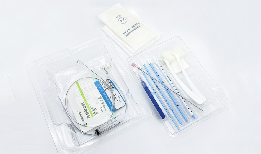 由基本配置:引流導管、導管鞘、塑柄手術刀、J型導絲、導引套管針、孔巾、鋪巾;可選配置:擴張管、注射器、海棉刷、導管固定貼、非吸收外科縫合線(帶針)、滅菌橡膠外科手套、紗布組成。